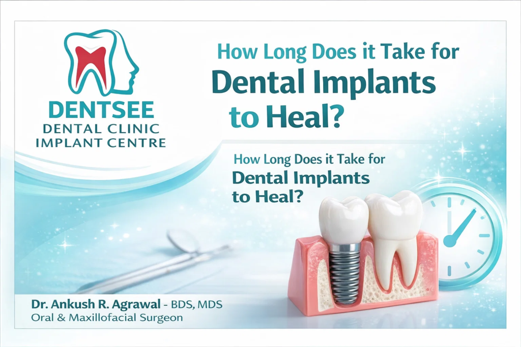• Healing Time: Dental implant healing typically takes 3 to 6 months for osseointegration, with the first few weeks involving initial recovery.